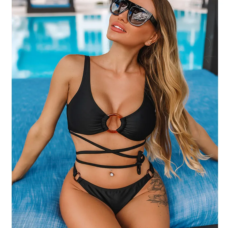 Best Offer 2piece set women's Sexy bikini Bra and shorts 2020 Summer Cotton blend Bandage super bikini suits set ladies Sexy suit twinset