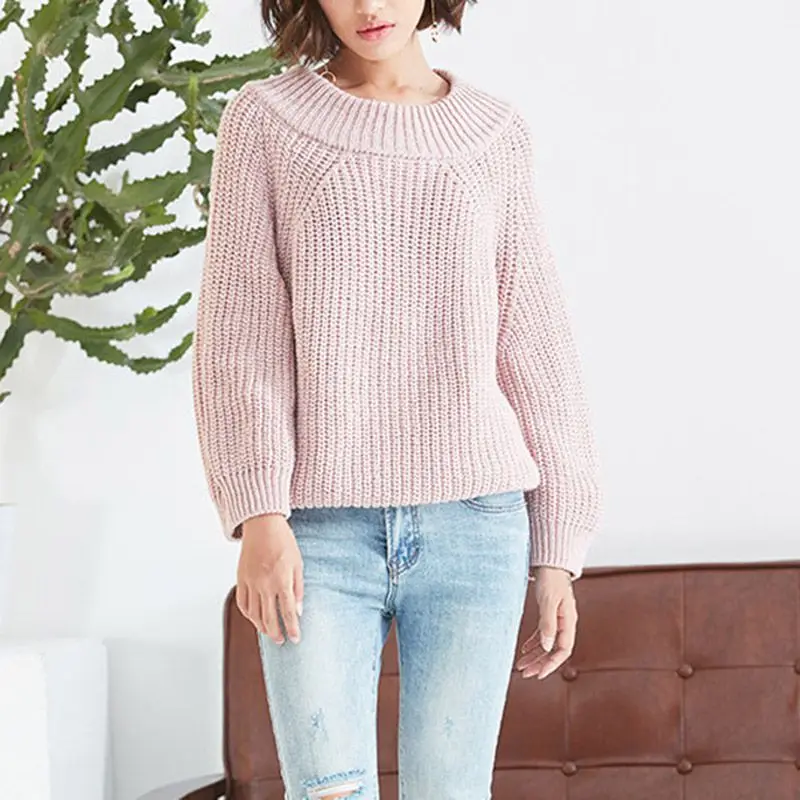 Buy Women Fashion Sexy O-neck Sweater Lantern Sleeve Pullover Spring Autumn Knitting Sweaters