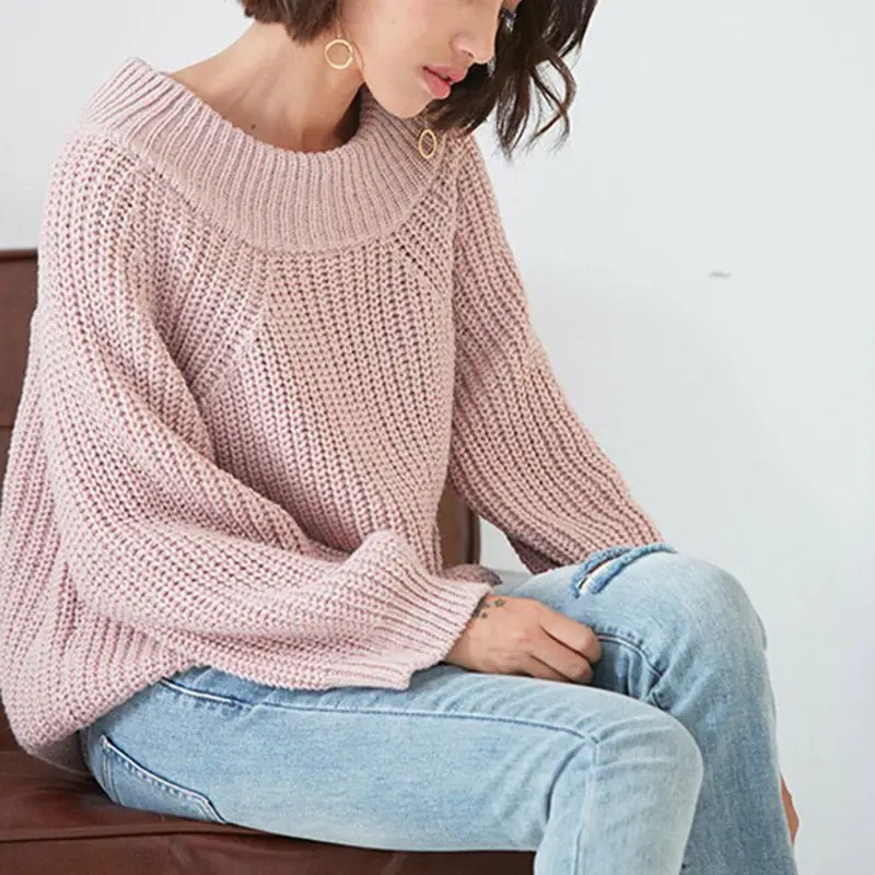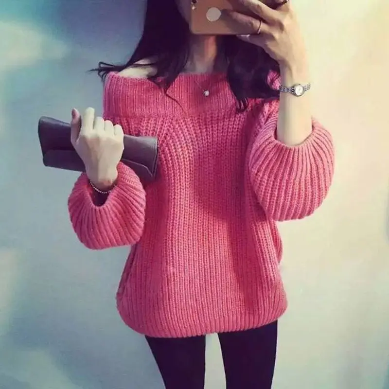 New Women Fashion Sexy O-neck Sweater Lantern Sleeve Pullover Spring Autumn Knitting Sweaters